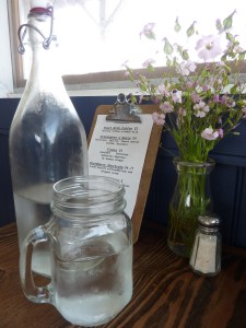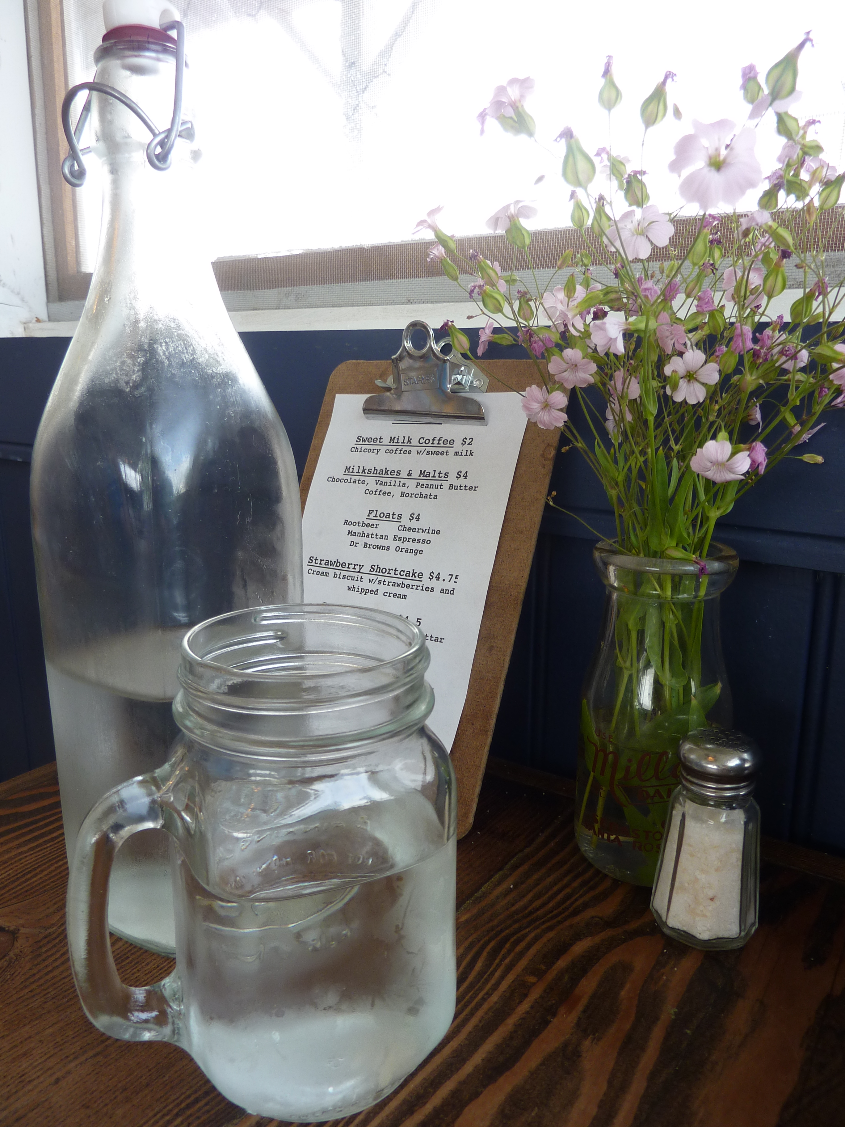 The details are everywhere if you look carefully, from the wildflowers on the table, the homemade jams and condiments for sale, to the mason jar water glasses.