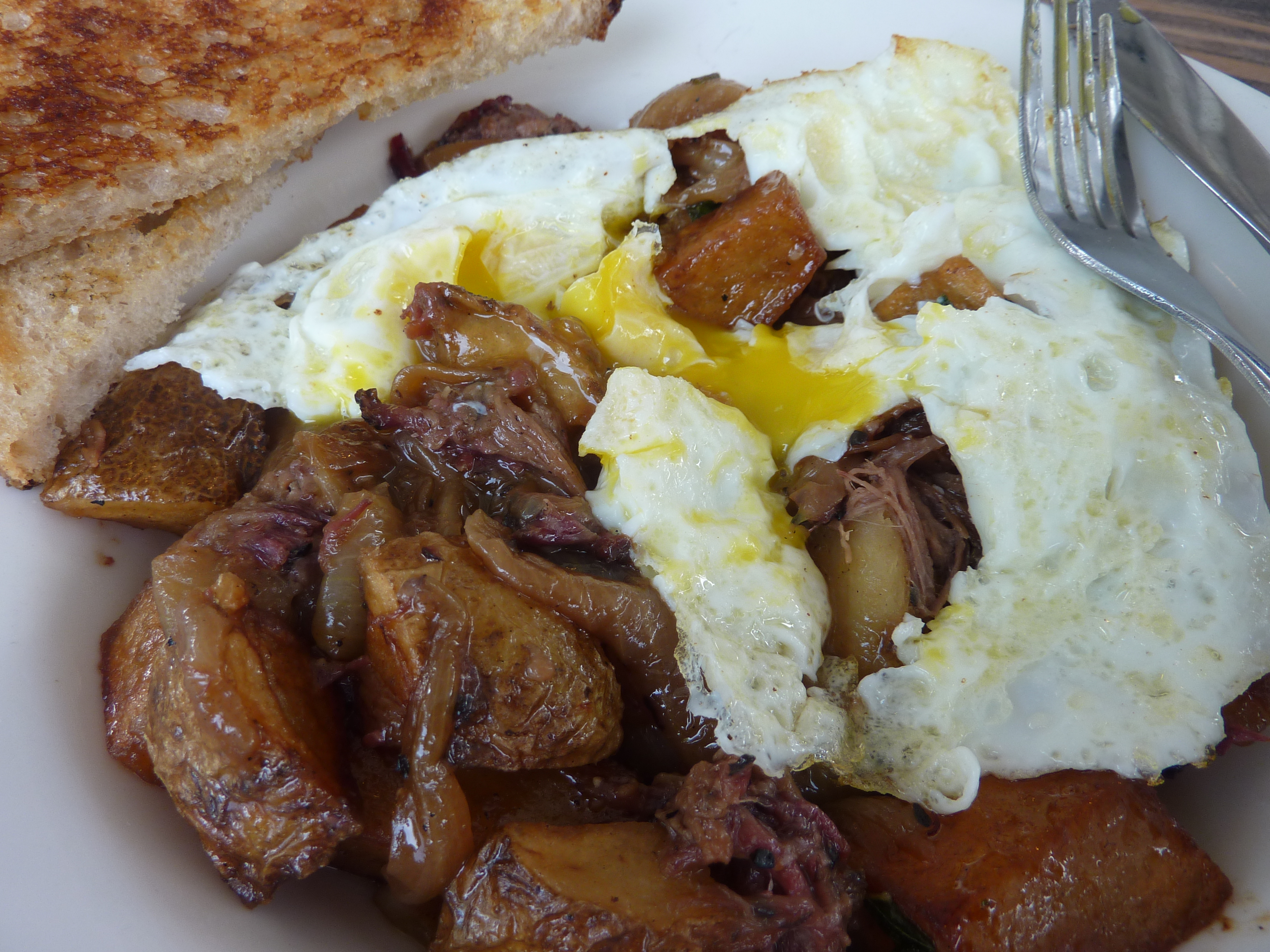 This place is known for their meats and brisket is the thing to have here. So since it was breakfast, I got the Brisket Hash with carmelized onions, roasted potatoes and a perfectly runny fried egg on top.