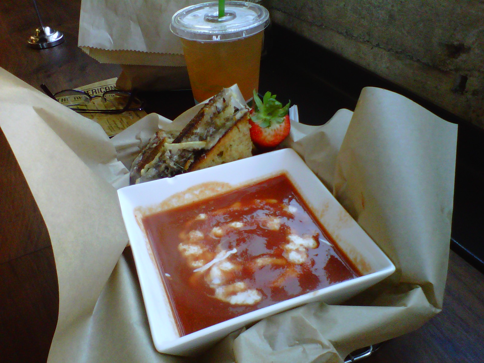 My foodie pal Anne Marie and I ordered the Red, White and Blue Plate special, which gives you your choice of a nice sized sammie and small bowl of housemade roasted tomato soup with creme fraiche. Everything here is homemade with primo ingredients, right down to the lemonade and freshly baked sweets and breakfast breads.