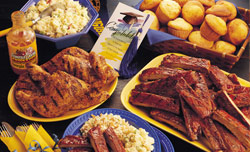 First off, the menu is huge! Every combo you can think of (ribs and chicken, catfish fingers and roasted chicken, brisket and ribs, and on and on…) is possible with the way they’ve arranged things. Most items include at least one side dish, many with two.